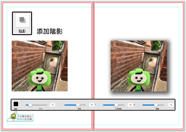 可改變陰影角度、位移、顏色、延展效果、不透明度。