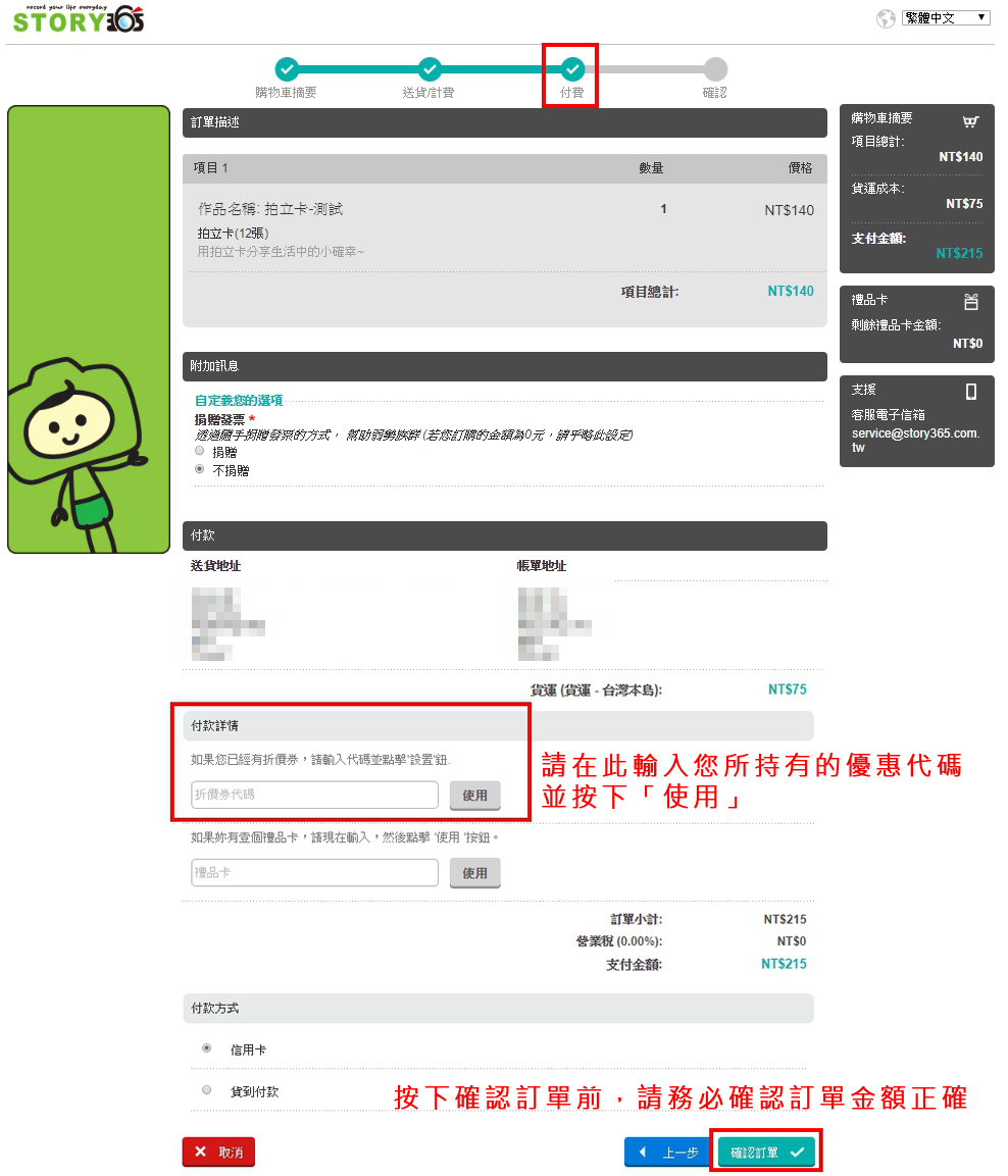 Step6:確認訂單資訊 、使用折價券(團購券) 及 付款方式